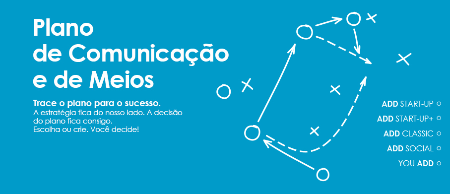 Seja qual for a sua escolha, com os Packs ADD START-UP e ADD START-UP+ tem a garantia de que a sua comunicação está no caminho certo. Dê a conhecer-se ao mercado e conquiste o seu público-alvo.